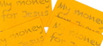 NOTE: Both sides of the envelope are imprinted. One side reads "MY MONEY FOR JESUS" and the reverse side has the words "MY NAME" and a line above it for the student to personalize.